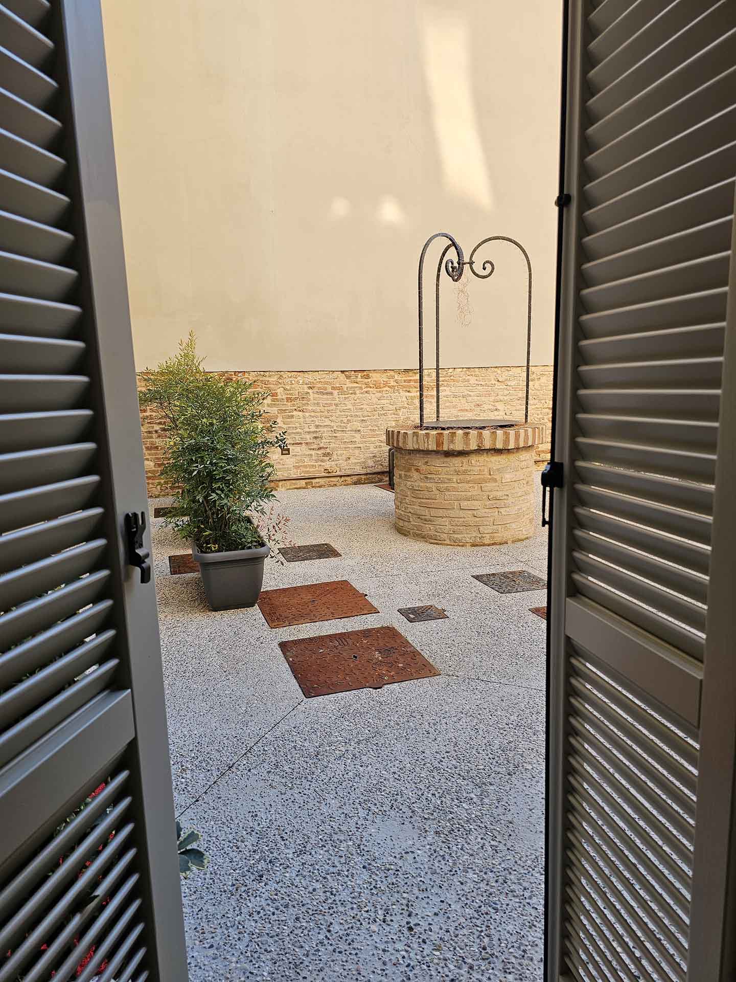 L’Appartamento Iris si trova al piano terra di Palazzo Glicine ed è una soluzione spaziosa e funzionale, ideale per coppie o famiglie fino a 4 persone. La vista sulla corte interna e sul giardino regala un’atmosfera tranquilla e rilassante, perfetta per un soggiorno all’insegna del comfort.