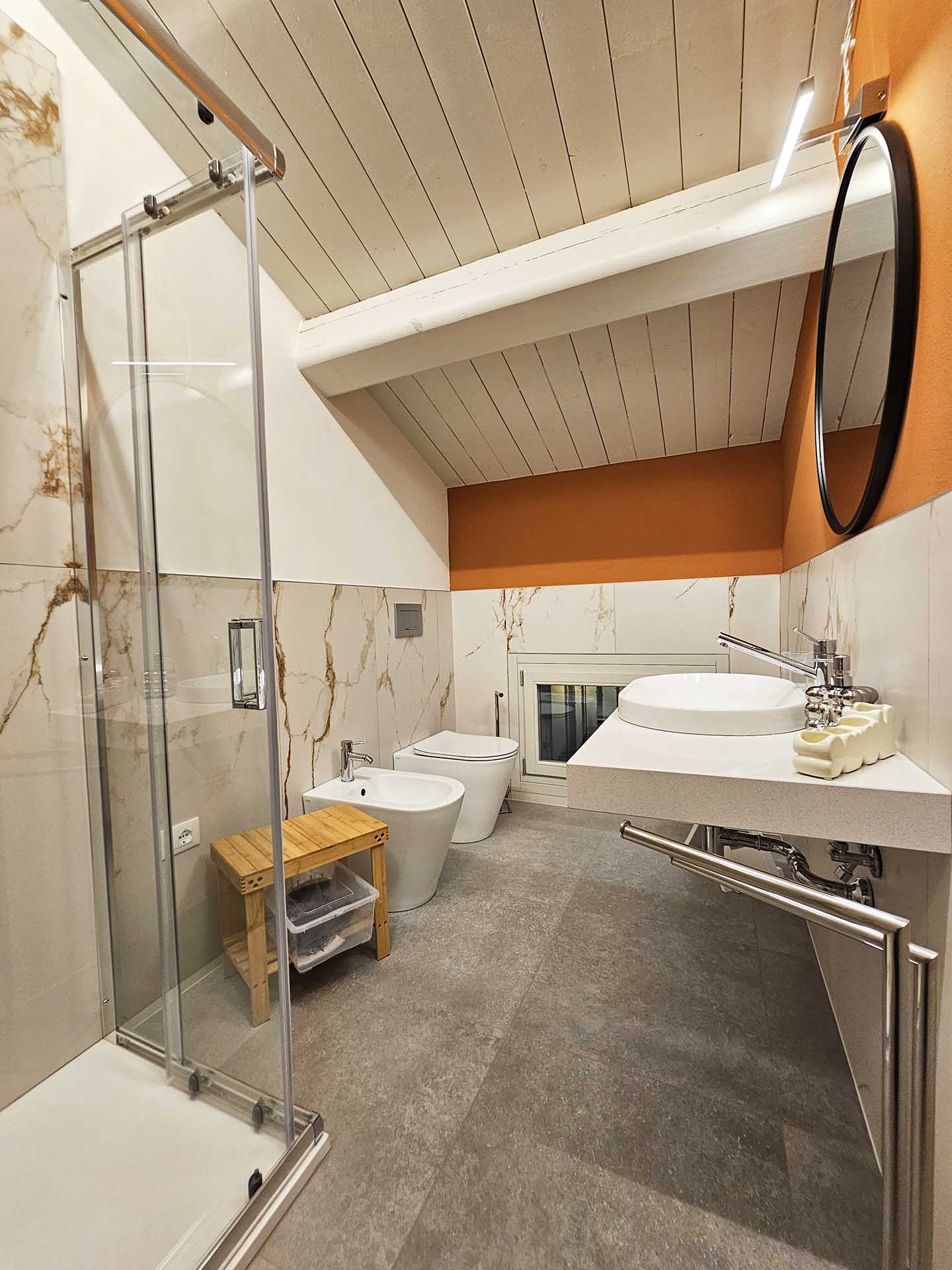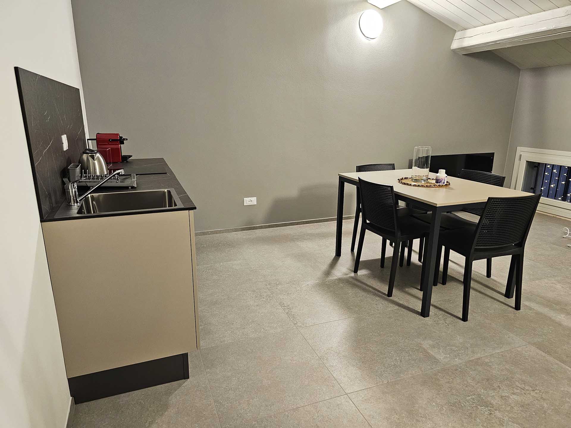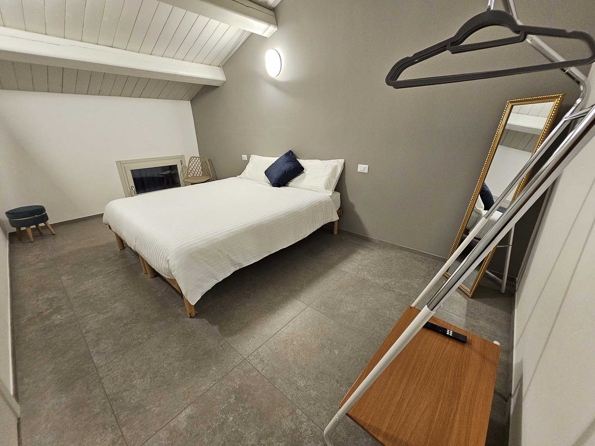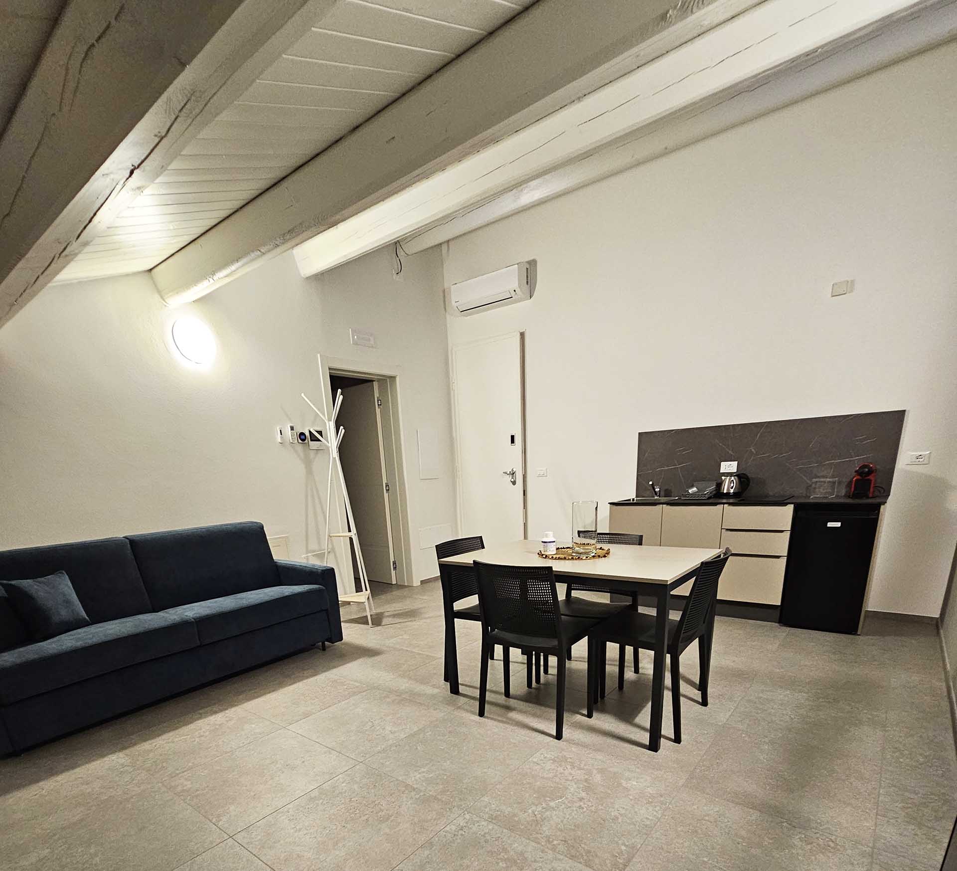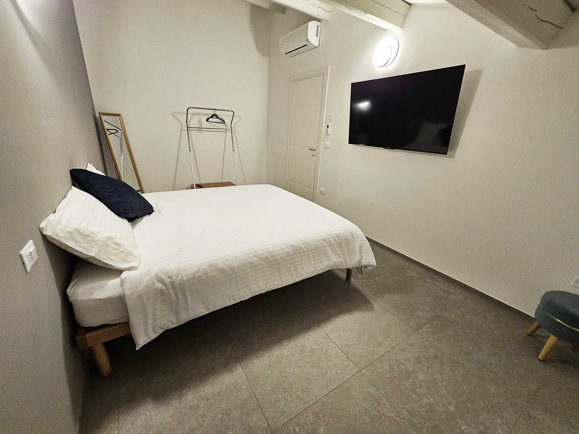 L’appartamento è composto da una zona giorno con divano letto e TV, camera matrimoniale con TV, bagno privato e angolo cottura completamente attrezzato. Gli spazi sono pensati per offrire praticità e relax, con dotazioni quali Wi-Fi gratuito, aria condizionata e riscaldamento a pavimento, per un soggiorno piacevole in ogni stagione.