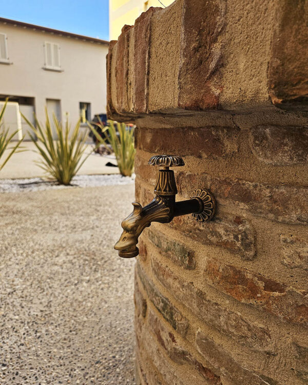 Durante la bella stagione, gli ospiti possono usufruire della corte interna con giardino, uno spazio tranquillo arredato con tavolini e sedute, ideale per rilassarsi all’aperto.